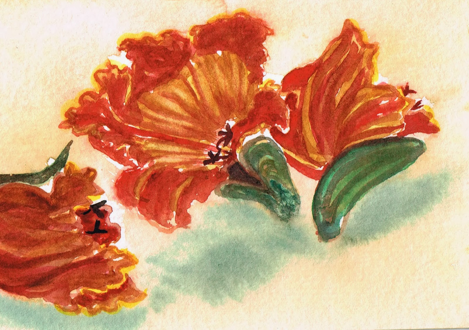 a couple in acrylic ink and watercolor. I won a pkg of acrylic Ink from Higgins Ink and have been experimenting with then and watercolor.